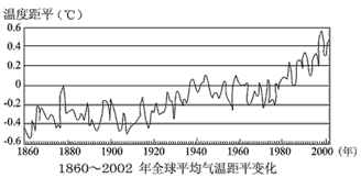3、综合题 阅读下面材料,回答问题。 资料一: ? 气候变化是世界面临的最严峻、深远的挑战之一。2010年10月4日至10月9日,在天津举行的联合国气候变化会议,是中国首次承办联合国框架下的气候谈判。天津气候谈判会议在气候资金、森林保护、能力建设等议题上取得了进展,对推动墨西哥坎昆会议起到了积极的作用。但是,目前国际气候谈判的进程离真正保护全球气候的目标还差的很远,谈判各方在关键问题上的分歧还很严重。很多国家并不把气候谈判看成是拯救气候的竞赛,而是在比较谁为保护气候做的更少、从其他国家得到的更多。 资料二:“1860~2002年全球平均气温距平变化”