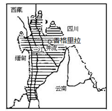 材料二? 2014 年 1 月 11 日凌晨的火灾,让香格里拉这座中国保存最完好、最大的藏民居群 ——独克宗古城三分之二建筑从地平面上消失。下图为香格里拉位置示意图。