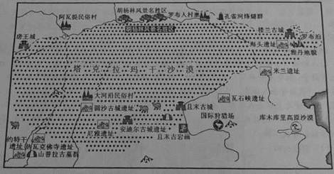 2、综合题 塔克拉玛干沙漠旅游是一种新的旅游模式,沙漠之旅充满了冒险、挑战和独特魅力。 下图是塔克拉玛干沙漠地区旅游资源分布示意图。读图回答下列问题。