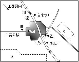 (3)评价图中造纸厂、自来水厂区位是否合理。(6分)