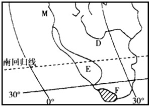 1、E处为纳米布沙漠,它沿大西洋海岸延伸2100千米,该沙漠最宽处达160千米,而最窄处只有10千米,其沙漠的分布特征受到:①暖流影响、②寒流影响、③迎岸风、④离岸风