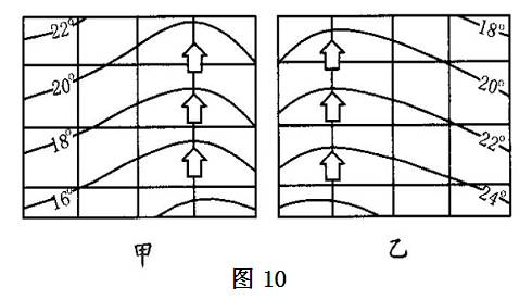 3、单选题 在图10中,甲、乙分别为两个海域的海水表层等温线示意图,箭头为洋流流向,叙述正确的是