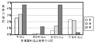 (3)京津冀制造业整体竞争力最高的是?。简析河北资源加工业竞争力高的原因。