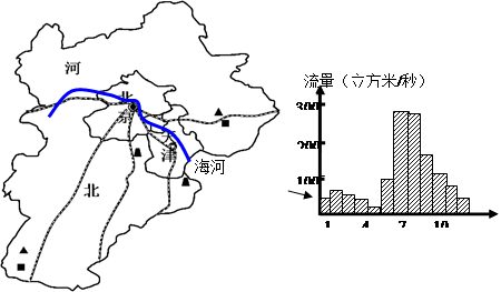 材料一:京津冀地区图及图示河流各月径流量示意图