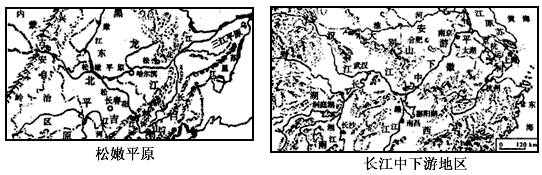 (2)据图和表1比较甲、乙两城气温、降水特点的异同,并分析原因。(8分) (3)分析西北部莫西卡利地区承接和发展电子工业的主要有利条件。(3分) (4)分析该国人口分布特点及原因。(2分) 参考答案:(1)等深线与海岸线基本平行(大致沿西北—东南向延伸),且分布密集(2分);大洋板块与大陆板块相碰撞,大洋板块插入到大陆板块之下,形成海沟。(2分) 本题解析:本题考查世界区域地理。(1)直接读图判断,该地区位于板块交界处,在海洋一侧形成海沟,故等深线密集。(2)直接从表格资料中归纳甲乙两地的气温(气温高低和温差)和降水(总量和季节分配)的相同与不同点。甲乙两地应都为热带草原气候,但由于地形、海陆位置的差异而导致了气候特征的差异。(3)该地区位于美墨边界,承接电子工业主要是由于地理位置优越、地价、住房和劳动力等都较为便宜。(4)该国家为墨西哥,位于热带地区,沿海平原受热带雨林气候影响,终年高温多雨,不利于人类生存,故人口主要集中于内陆高原地区,地势略高,气候较凉爽。 本题难度:一般 3、单选题 下图分别为松嫩平原和长江中下游地区图,读图回答1—2题。 1、关于松嫩平原和长江三角洲,下列叙述不正确的是 [? ] A.二者都是雨热同期的季风气候 B.长江三角洲是亚热带季风气候,夏季高温多雨,雨热配合条件好 C.松嫩平原是温带季风气候,夏季温度高且多雨,但是由于纬度位置高,所以热量条件不如长江三角洲 D.松嫩平原的温暖季节长,所以造成农作物的生长期长 2、以下错误表达松嫩平原和长江中下游平原农业条件比较的是 [? ] A.松嫩平原黑土土壤肥沃,而长江中下游平原是水稻土,不如黑土生产力高 B.松嫩平原人少地多,农业生产规模大,粮食的商品率高 C.长江中下游平原在良好的水热条件基础上,发展水田耕作,一年两熟或三熟,生产规模大,粮食商品率高于松嫩平原 D.长江中下游平原河湖面广,水产业比松嫩平原发达 参考答案:1、D 本题解析: 本题难度:一般 4、单选题 读下图分析1985年以来,珠江三角洲地区的产业升级方向及影响其变化的主要原因是 参考答案:B 本题解析:略 本题难度:简单 5、单选题 关于我国降水的正确表述是( ) 参考答案:A 本题解析:我国降水量从西北内陆向东南沿海递增;各地降水量的季节分配不均,具体情况具体分析;北方一些地区的水旱灾害发生频繁,是因为那里降水量的年际变化大;湿润地区的年降水量必须达到400毫米以上。 本题难度:一般 |