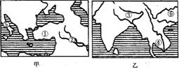 小题1:在甲、乙两图中,表示伊拉克(国)的数码是(?)