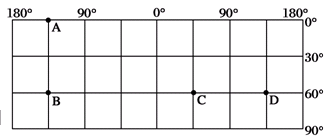 5、单选题 读经纬网图,回答各题。