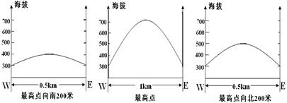 5、单选题 某一近似圆状丘陵,现沿最高点、最高点向南、向北200米作三条东西的剖面线,其结果如右图所示。读图回答下列各题。