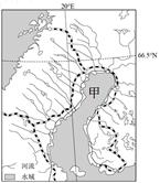 【小题2】图中甲处海湾为波的尼亚湾,从图中可以看知,海湾西岸河流的长度较短,并流入海外,为外流河。西北地区地势较高,河流流向为西北东南流向,且成并行状排列。故选D。
