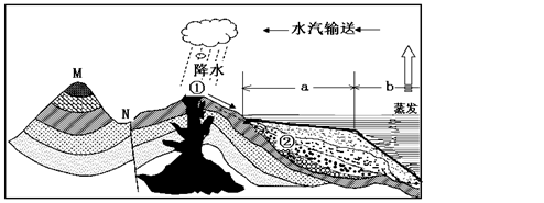 (3)图中所示水循环为___________水循环,在该水循环参与下,①处的岩浆岩可转化为②处的 岩。(2分)