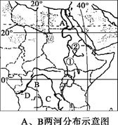 (2)B河地处热带雨林地区,A河位于热带草原和热带沙漠地区;B河位于世界最大盆地,A河流域面积相对较小。