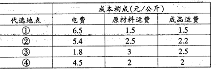 小题2:该企业在不同地点布局主要是电费的成本比重较高,所以为动力指向型。所以本题选择B选项。