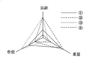 A.运量大、速度快、运费较低,受自然条件影响小,连续性较好 B.发展快、应用最广,机动灵活,周转速度快 C.历史悠久的运输方式,运量大,成本低 D.运具和线路合二为一的运输方式,管理方便 3、单选题  ?随着生活节奏的加快,人们出行对时间因素考虑逐渐增多,且时间因素可能成为选择交通方式的主导因素,读“三种交通运输方式从门到门所需时间示意图”,回答1~3题。  4、单选题  据图判断,莫斯科城市道路网络布局形式的主要形成因素是 5、单选题  比较我国主要运输方式(水路运输、铁路运输、公路运输、航空运输)的运量和速度的特点,回答问题。 |