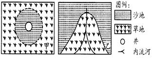1.甲地以井为中心在草原上形成沙地,其原因可能是2.在乙地区,可能反映该地区绿洲萎缩的现象是