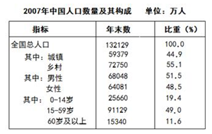 1.表中显示出,我国人口2.2007年我国的人口密度约为每平方千米