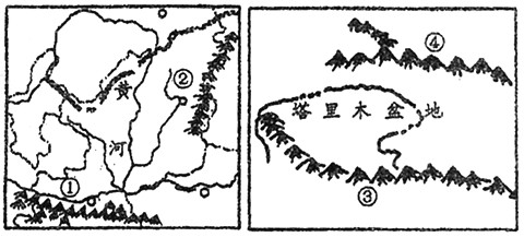 小题1:图1中数码代表不同的山脉,其中地处地势三级阶梯交界处的是(?)处于暖温带和中温带分界处的是(?),位于亚热带季风气候和温带季风气候分界处的是(?)。(以上空格用数码填写共4分)
