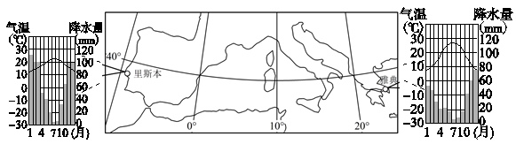 【小题1】里斯本和雅典的纬度接近,两地的夏季温度有差异,雅典的气温高于里斯本,主要是里斯本位于大西洋沿岸,受沿岸寒流影响,温度较低。答案选B。