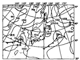 A.甲地受副热带高气压控制 B.乙地盛行西北风 C.丙地盛行西北风 D.乙地高温多雨 4、单选题 当北半球为夏季时,下列所叙述的地理事物中,正确的是(?) 5、单选题 下图示意2014年7月5日21时某地区近地面等压线(单位:百帕)形势,读图,完成下列小题。 |