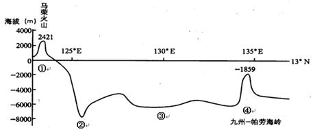 1.因板块挤压引发的地震多位于图中的2.马荣火山与九州—帕劳海岭的距离约