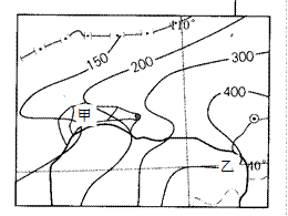 4、单选题 图为我国某地区年降水量分布图。读图回答1~2题。