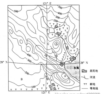 4、单选题 读某地等高线图(等高距为50米),完成29~30题。