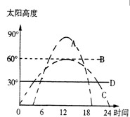 小题1:夏至日,在北极点见到的太阳高度日变化曲线是(?)
