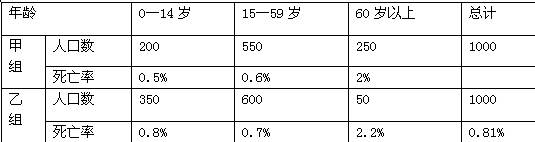 (3)按照各年龄组死亡率甲组比乙组?(高或低)。总人口死亡率甲组比乙组 ?(高或低)。