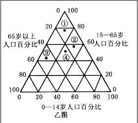 (2)乙组的人口构成与上图中的哪一点比较接近?。