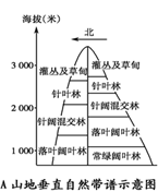 小题2:纬度位置不同热量不同,不同的温度带,生长的植被类型,所以纬度是影响基带的因素之一,山地的海陆位置不同,降水量不同,植被类型会有差异,所以海陆位置也是影响基带的因素之一,山麓的海拔不同,水热组合有差异,因而引起植被类型差异,故山麓海拔是影响基带的主要因素之一,另外山坡的坡向不同,热量或者水分会有差异,也会造成基带的差异,所以山坡的坡向也是影响基带的主要因素之一,故答案选A。