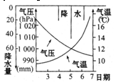 (3)根据材料三归纳材料二所示区域降水季节分配规律。并分析A、B两地年降水量差异较大的原因。(3分)