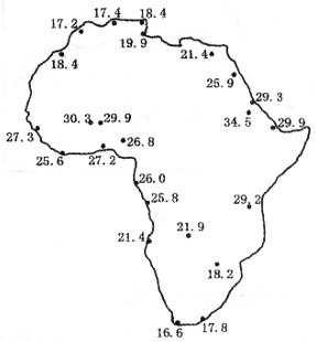 小题1:结合图示的经纬度位置判断还地区位于南美洲西部,由于安第斯山脉的影响,故等温线与等高线平行分布。