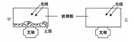 2、单选题 某学校地理兴趣小组做了如图所示实验:做甲、乙两个相同规格的玻璃箱,甲底部放一层土,乙底部不放土。中午同时把两个玻璃箱放在日光下,十五分钟后,同时测玻璃箱里的气温,结果发现底部放土的甲箱比没有放土的乙箱足足高了3℃。据此回答下面问题。
