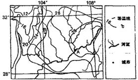 4、综合题 (26分)读我国某区域七月等温线和城市示意图,回答问题。