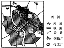 1、若数字①—④表示城市各功能区,则①最有可能是 [? ] A.住宅区 B.商业区 C.绿化带 D.工业区 2、若该城市工业布局合理,则该地主导风向和河流的大致流向是 [? ] A.西北风向北流 B.东北风向南流 C.东南风向南流 D.西南风向北流