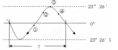 1.根据图示,时间T表示太阳直射点回归运动的周期,为1个回归年。