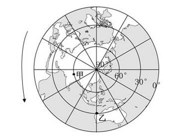 4、单选题 下图示意地球侧视图,读图回答下题。