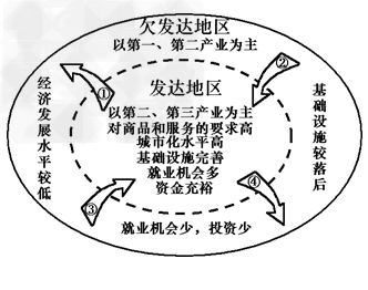 1.图中箭头所示的生产要素及其流动方向,符合区际关系的是 ①为资金?②为技术? ③为劳动力?④为资源