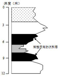 材料二:地理学家发现,尼罗河口附近海域有腐殖质(已死的生物体在土壤中经微生物分解而形成的有机物质)含量很高的沉积层。如下图所示。