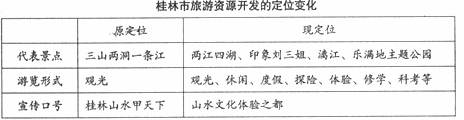 小题4:面对成绩与问题,桂林旅游业重新定位(见表中资料)。从审美价值、经济价值、科学价值、文化价值等旅游资源评价的角度,任选两方面,对桂林旅游资源开发定位的变化予以评价。