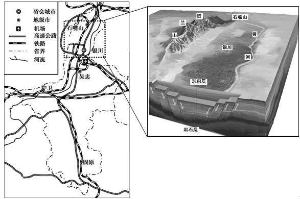 (2)据图分析,宁夏平原的成因是______________________(2分)