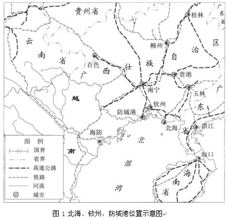 (4)北海、钦州和防城港相距较近,依托的城市城市化水平低,故遇到的共同问题:①区域经济发展水平较低(港口腹地发展水平较低);②周边港口多,竞争激烈;③城市化水平较低,工业化水平不高。
