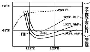 1.假设图中的天气系统以120千米/日的速度向东移动,符合甲地在未来30小时内天气变化特点的是2.影响图中季节性冻土等日数线走向的主要因素是3.冻土对自然环境的形成和发展具有独特的影响,下列叙述正确的是