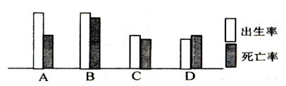 A、美国高出生率、高死亡率、低自然增长率