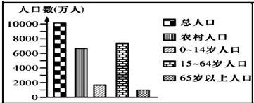 本题解析:由“我国某省2009年各类人口数量构成图”可知:15岁到64岁人口多,劳动力充足,0到14岁人口少,自然出生率没有过高,总人口减去农村人口等于城镇人口,可以得出城镇人口不超过一半,65岁以上人口达到了10%,因此该省老龄化现象严重,答案选D。