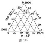 5、综合题  该图表示两类不同经济发展水平国家的人口年龄构成,读图17,回答问题。(共10分)