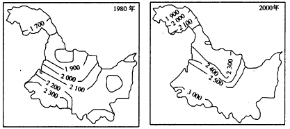 ?  材料二下图是1980年和2000年黑龙江省积温(℃)等值线分布示意图。