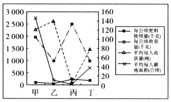 [? ] A.甲 B.乙 C.丙 D.丁 2、与甲国农业生产特征相似的是
