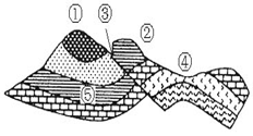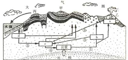 2、综合题 读岩石圈物质循环示意图,回答下列问题。
