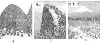 A.山谷、山岭 B.向斜、背斜 C.山岭、山谷 D.背斜、向斜 |
