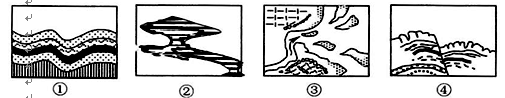 5、单选题 如图所示的地质构造或地貌景观中,主要由内力作用形成的是: